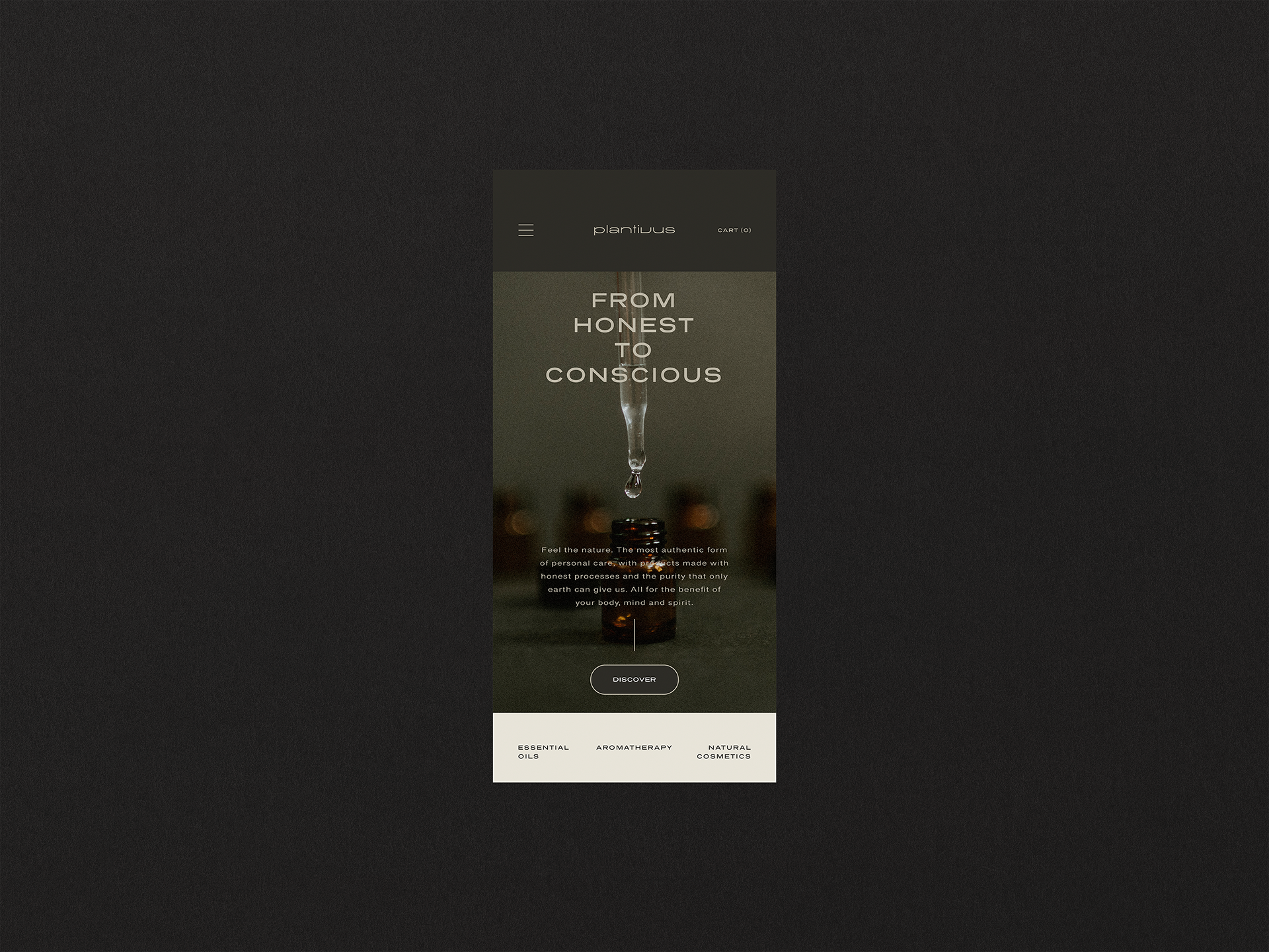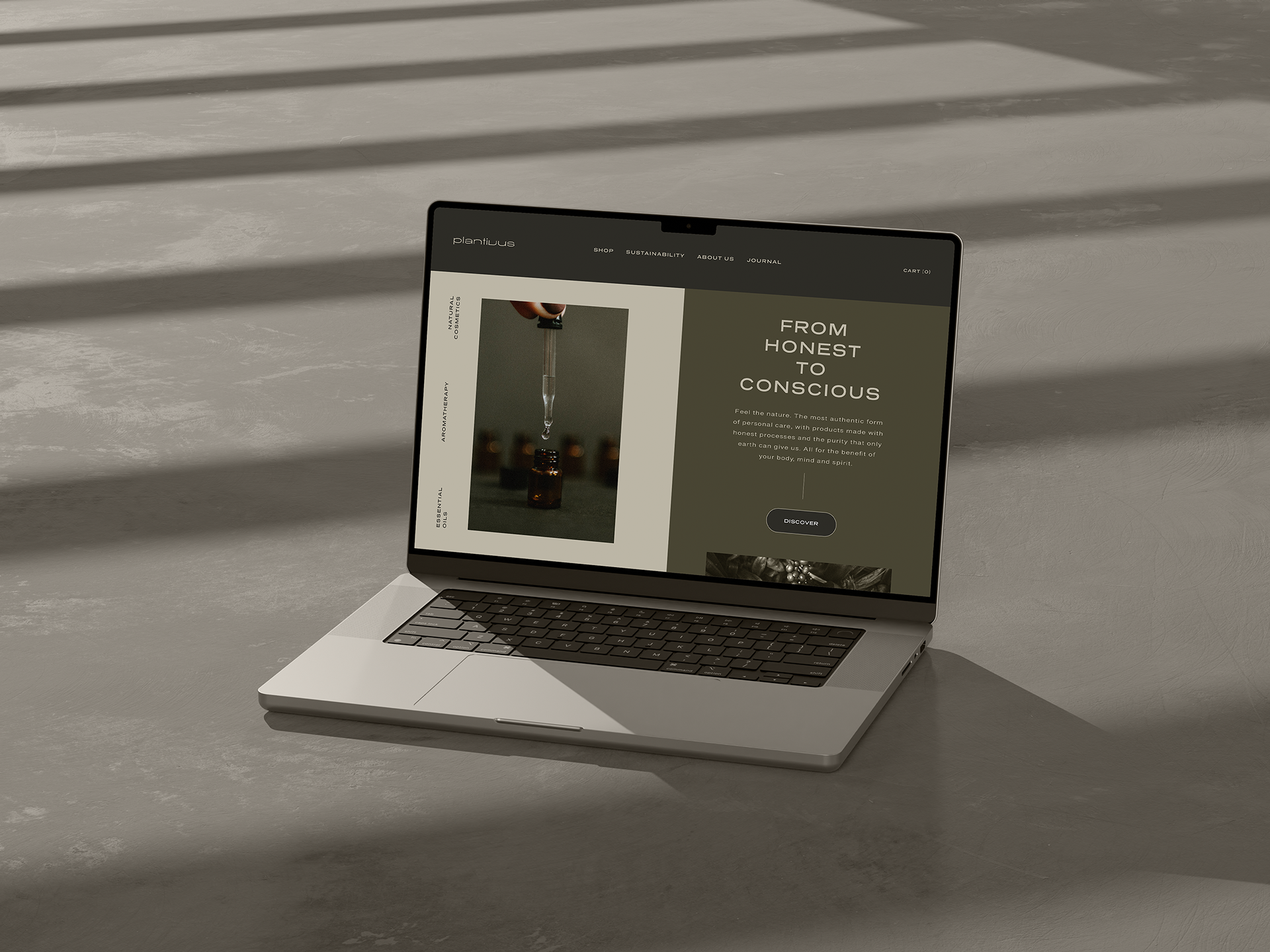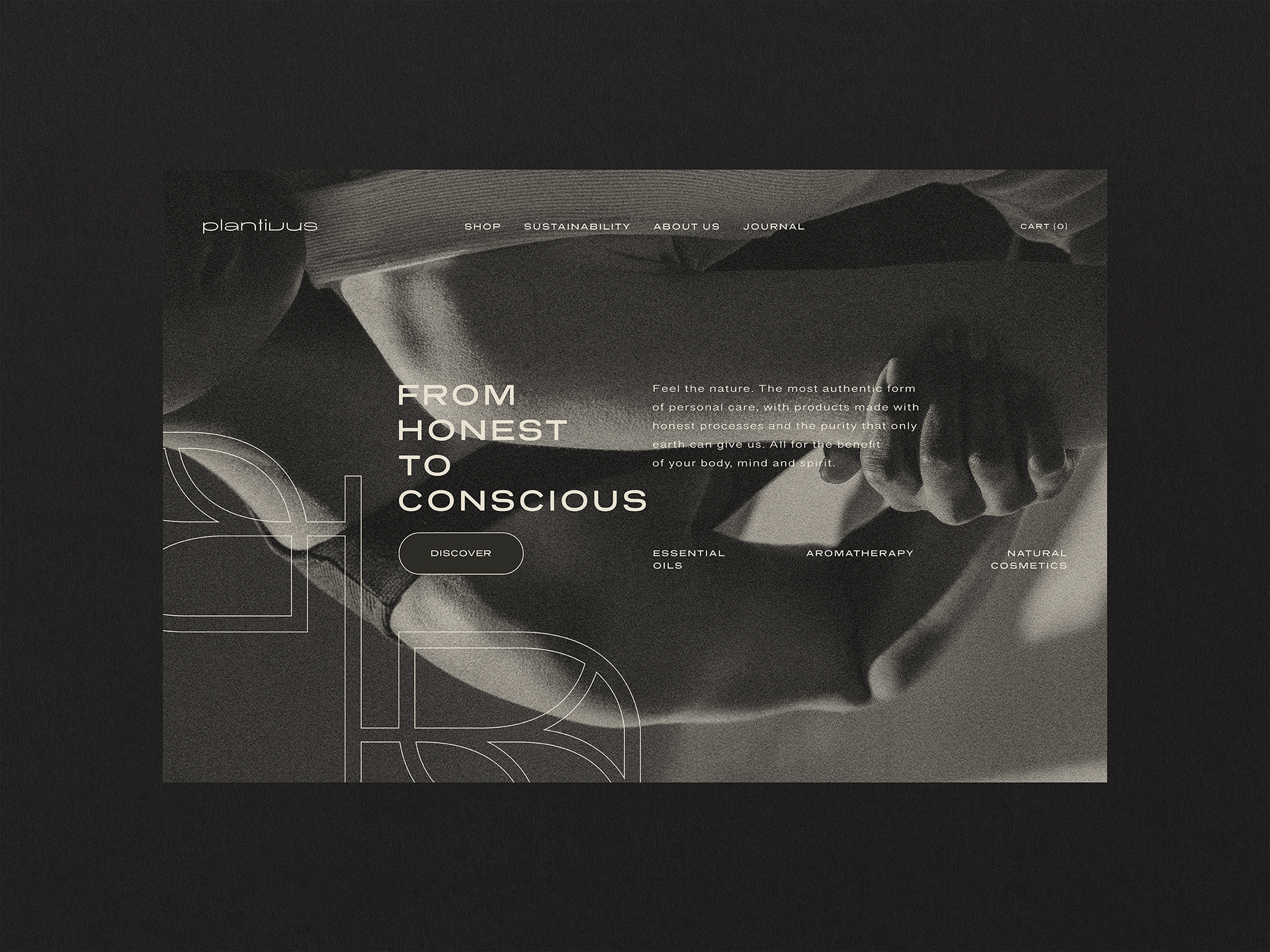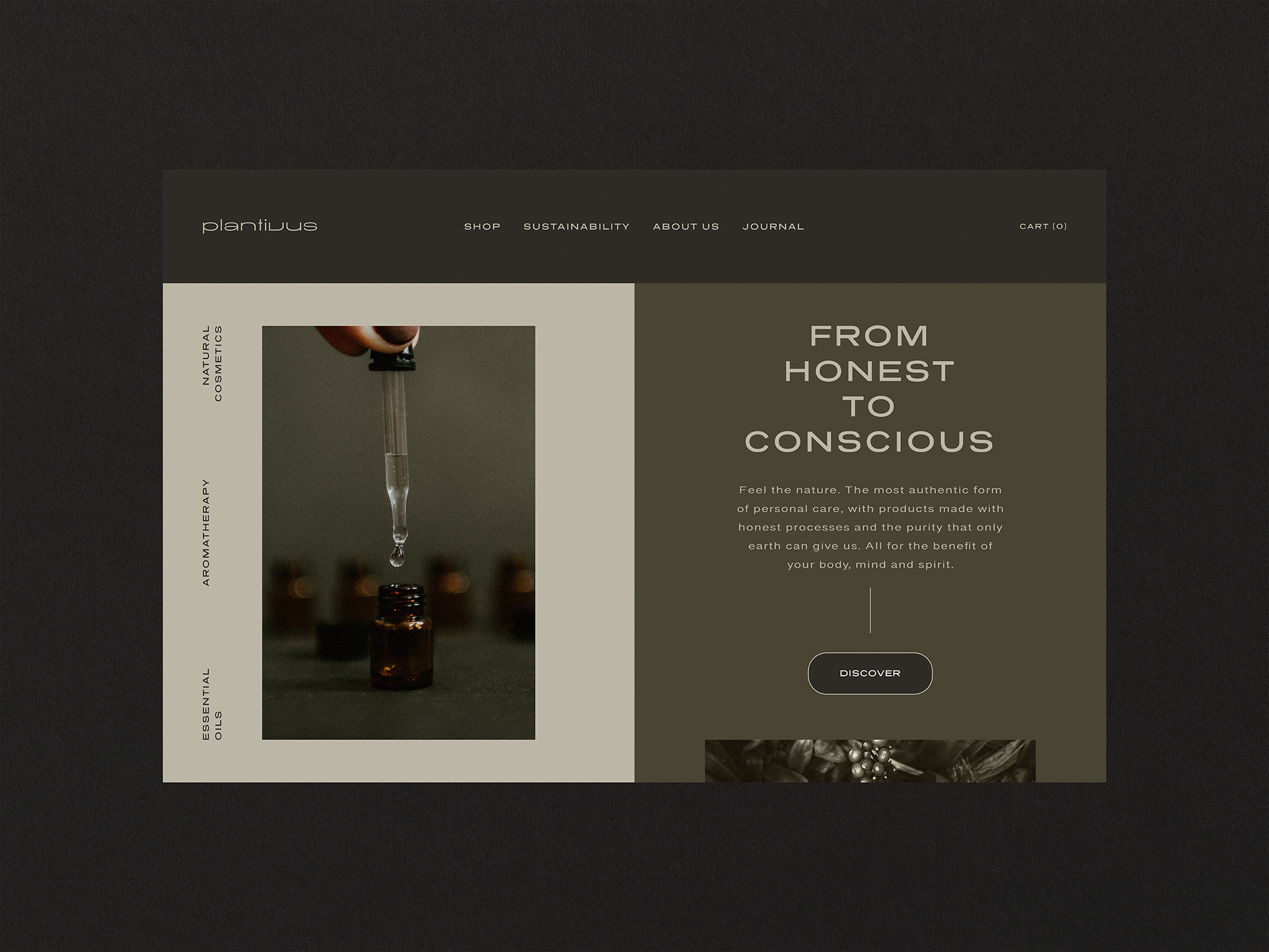 Two hero banners proposals as part of the brand identity of PLANTIVUS, a company specialized in essential oils and natural cosmetics. The objective of these proposals was to create the first face of the website after the client had chosen the official logo, and to capture the audience's attention in a simple and professional way, representing the essence of the brand.