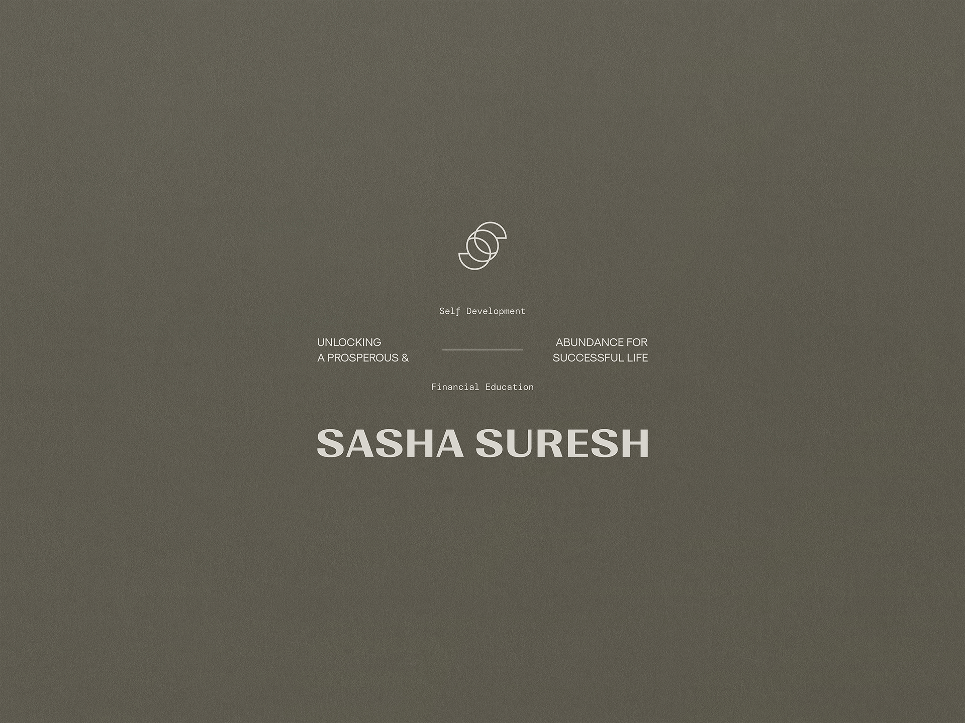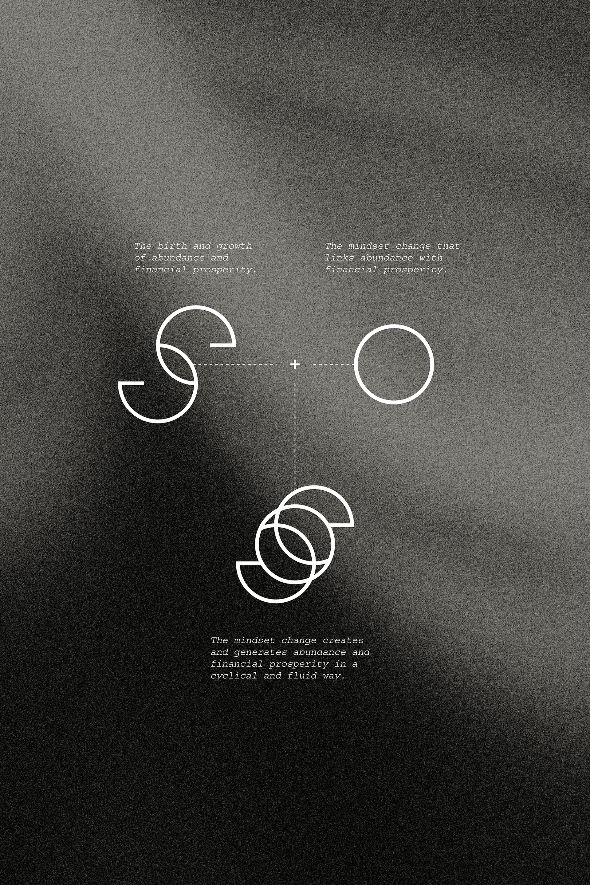 For the isotype, I first created two elements that have a disruptive point, that is, they could have been two perfect circles, but an important change modified their linear nature to start with a circular shape that creates greater fluidity. These two intertwined forms represent the birth of abundance and financial prosperity. However, these two entities cannot be created automatically, so the full circle represents the change in mindset that creates and unites abundance and financial prosperity. The result is an element that projects symmetry, fluidity and growth to the right. At the same time, it makes a slight reference to the initial "S" in Sasha Suresh's first and last names.