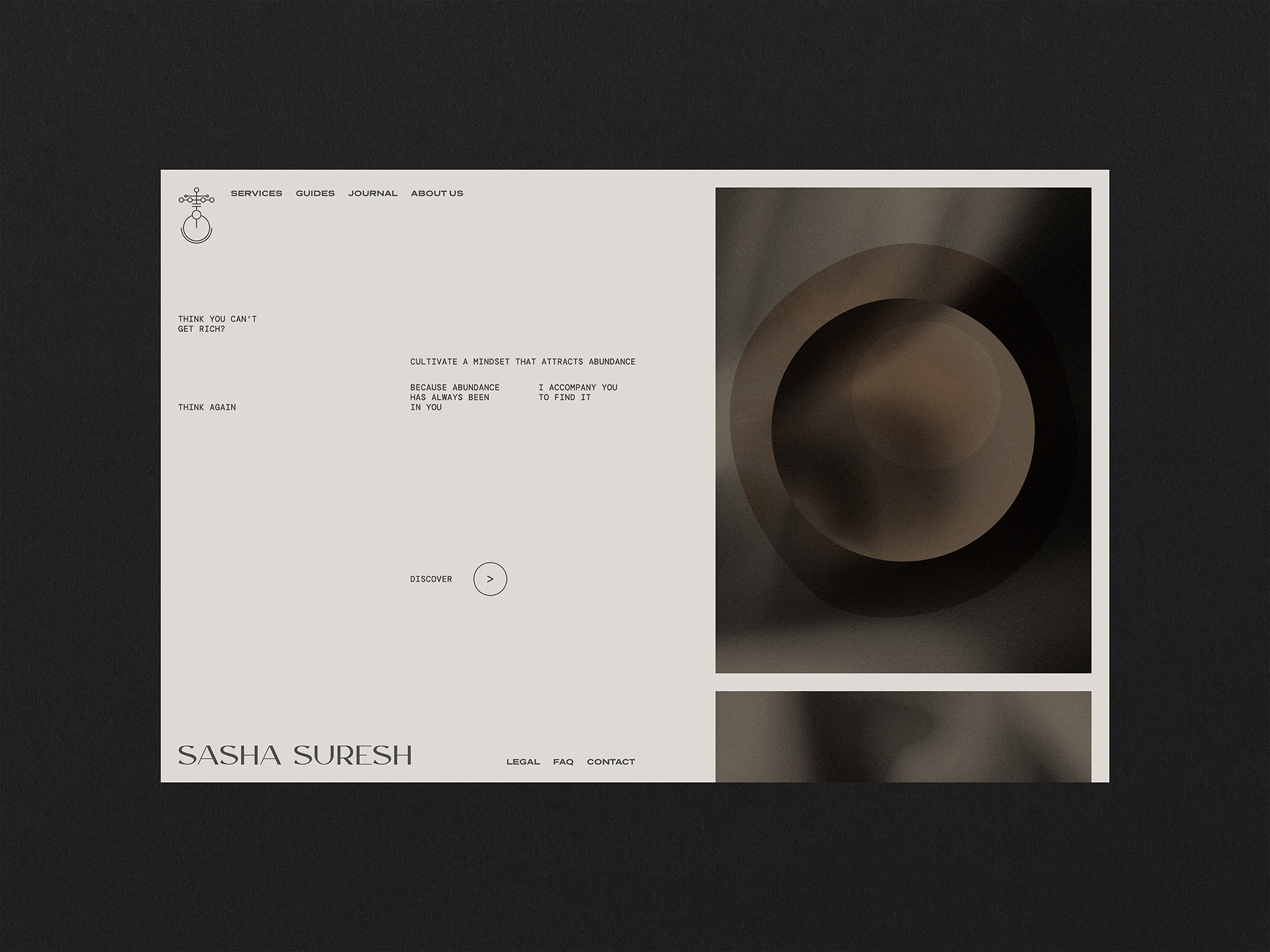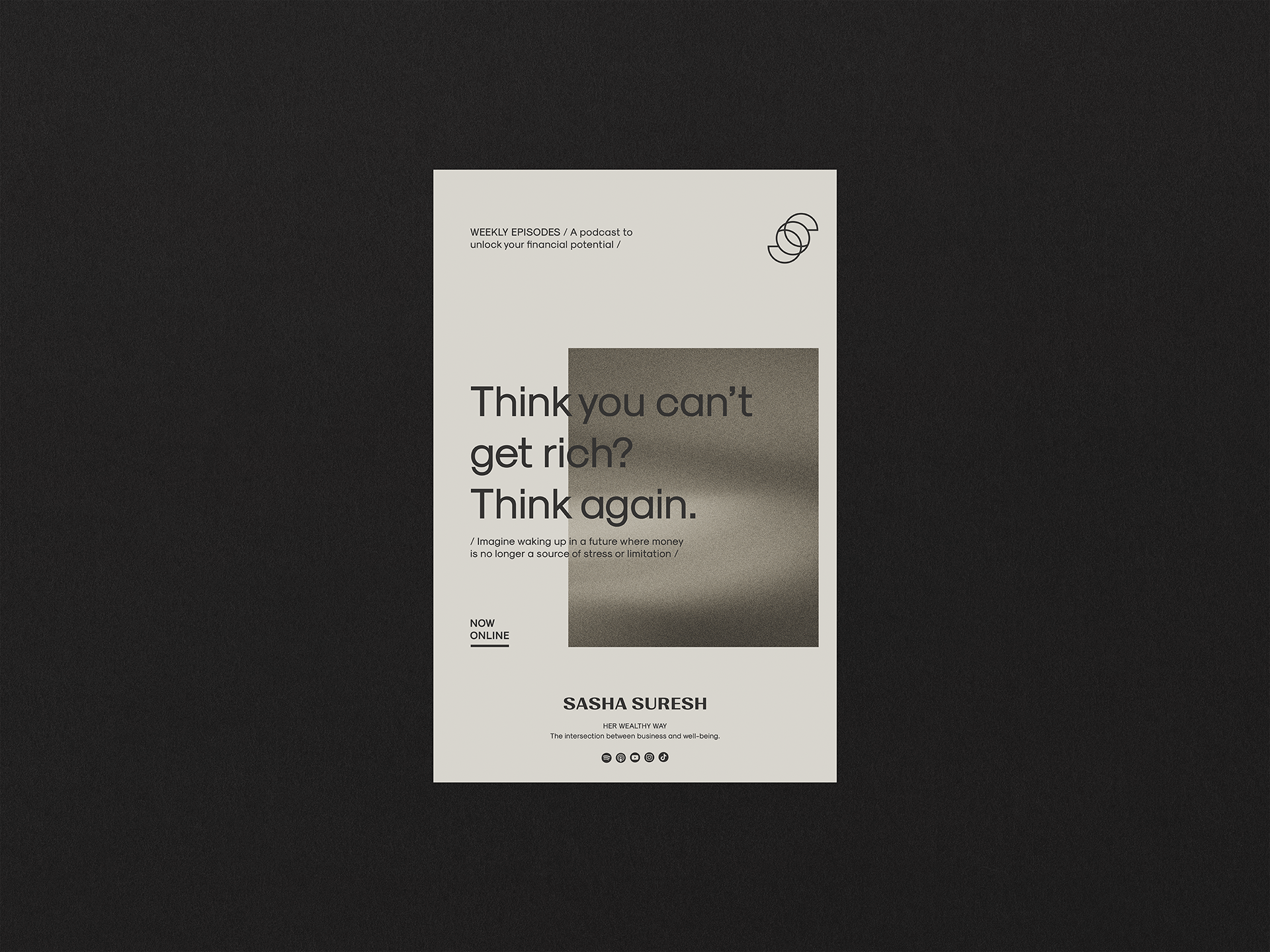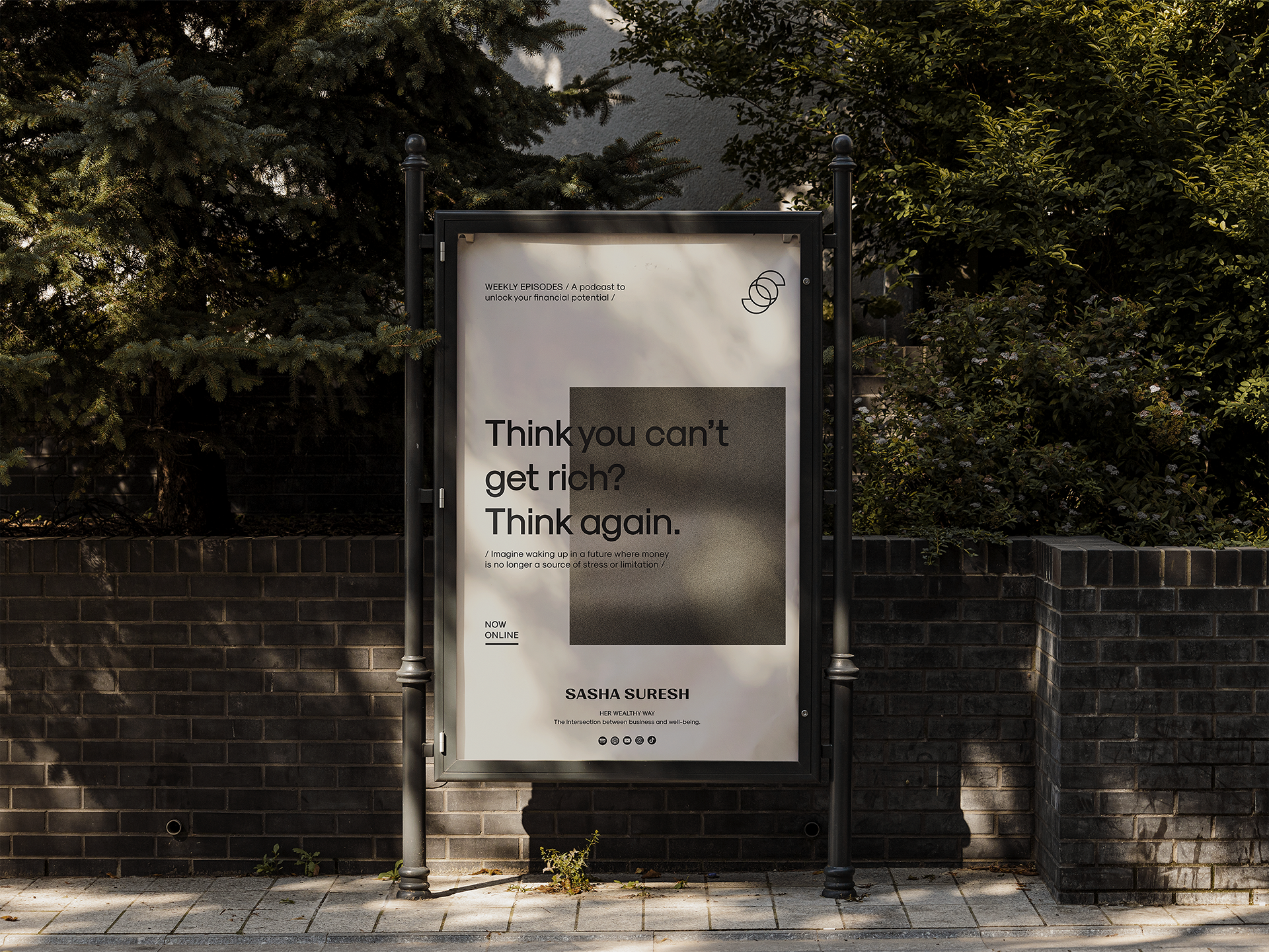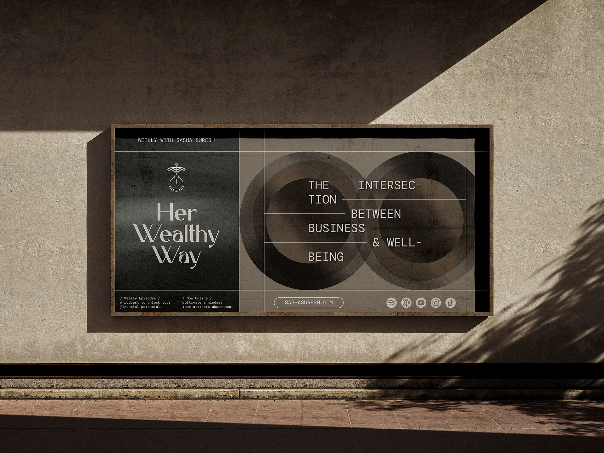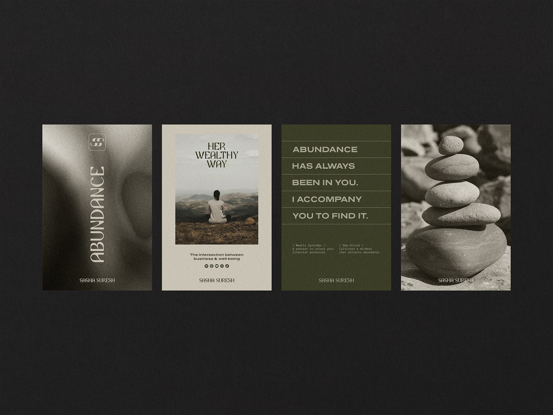 The first proposal is based on three keywords that define Sasha Sureh's brand essence: mindset change, abundance and financial prosperity.